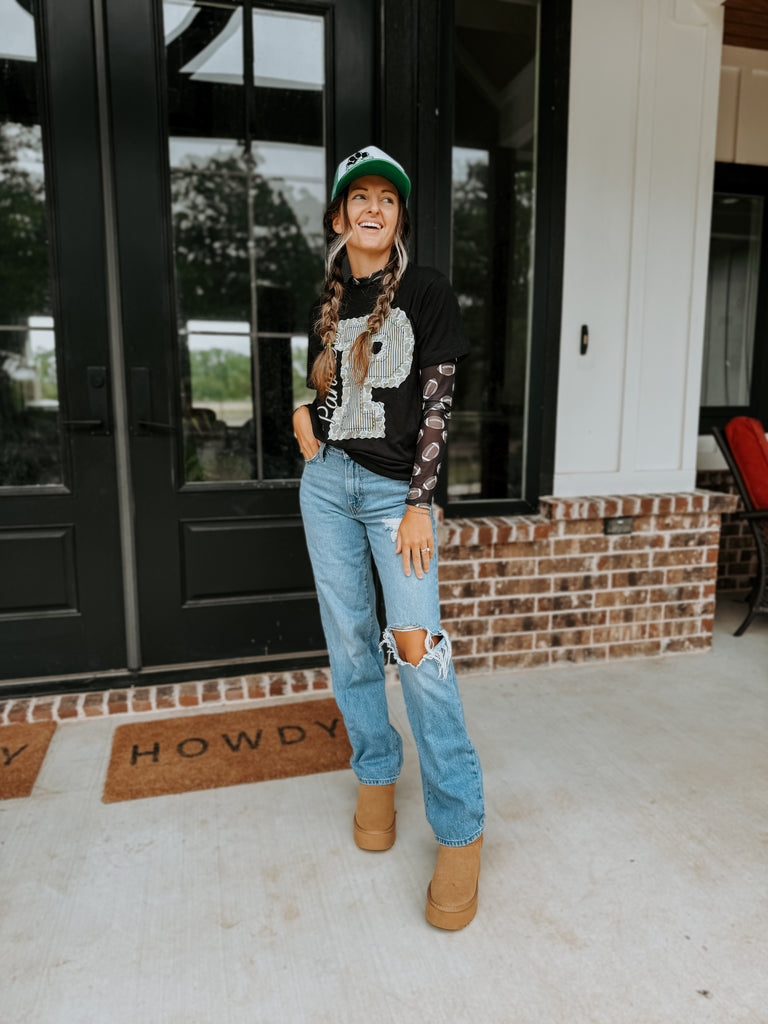 The cutest spirit wear around! Don’t see your team? Don’t forget that we can customize any design to your school and colors! This design is featured on TT light pink.